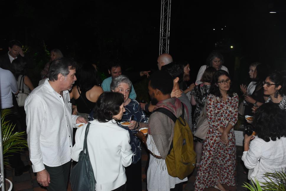 De vestido florido: Cristina Rebello (Sense Design) e, ao seu lado direito, Rachel Rezende (Instituto Moreira Salles)