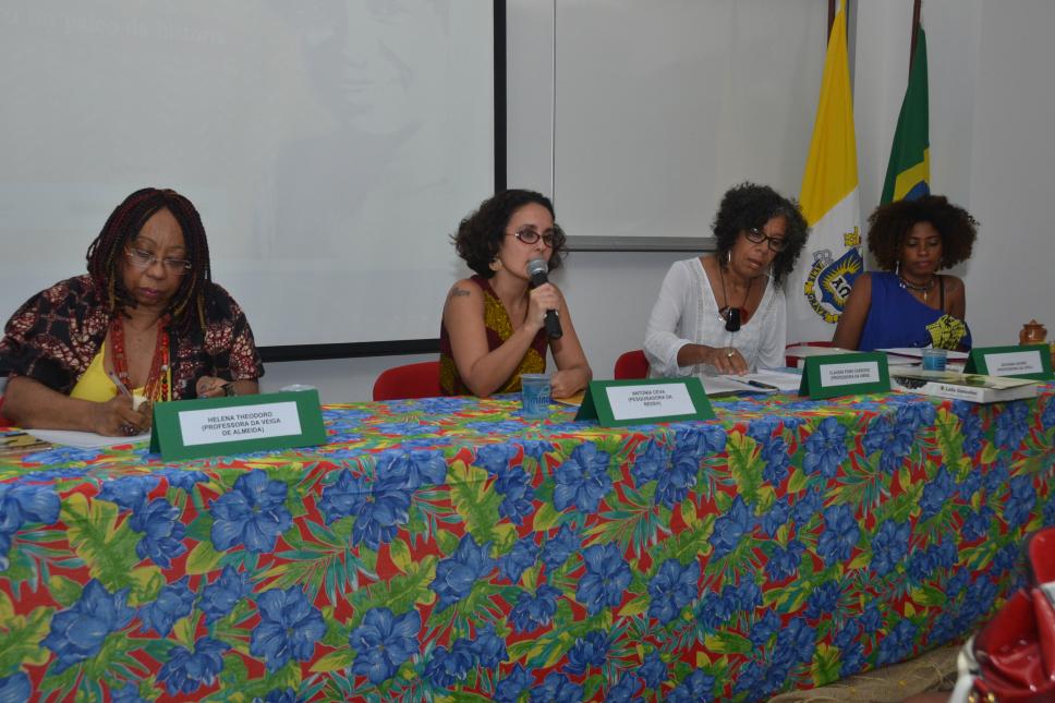 Da esq. para dir.: profa. Helena Theodoro (Universidade Veiga de Almeida - UVA), Antonio Ceva (REDEH), profa. Claudia Pons Cardoso (Universidade do Estado da Bahia - UNEB) e profa. Giovana Xavier (UFRJ)