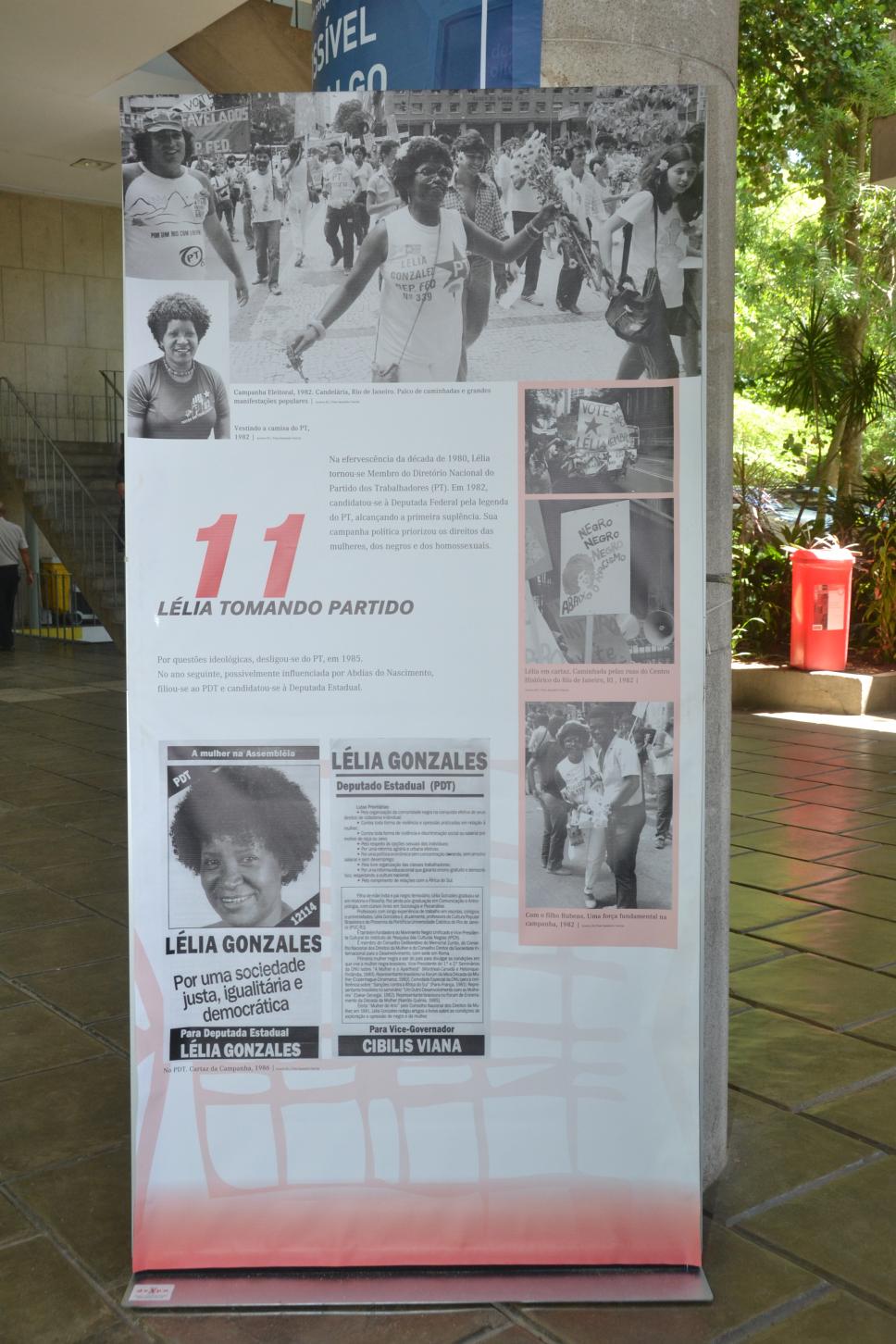 Banner da exposição "Lélia Gonzales - O feminismo negro no palco da história".