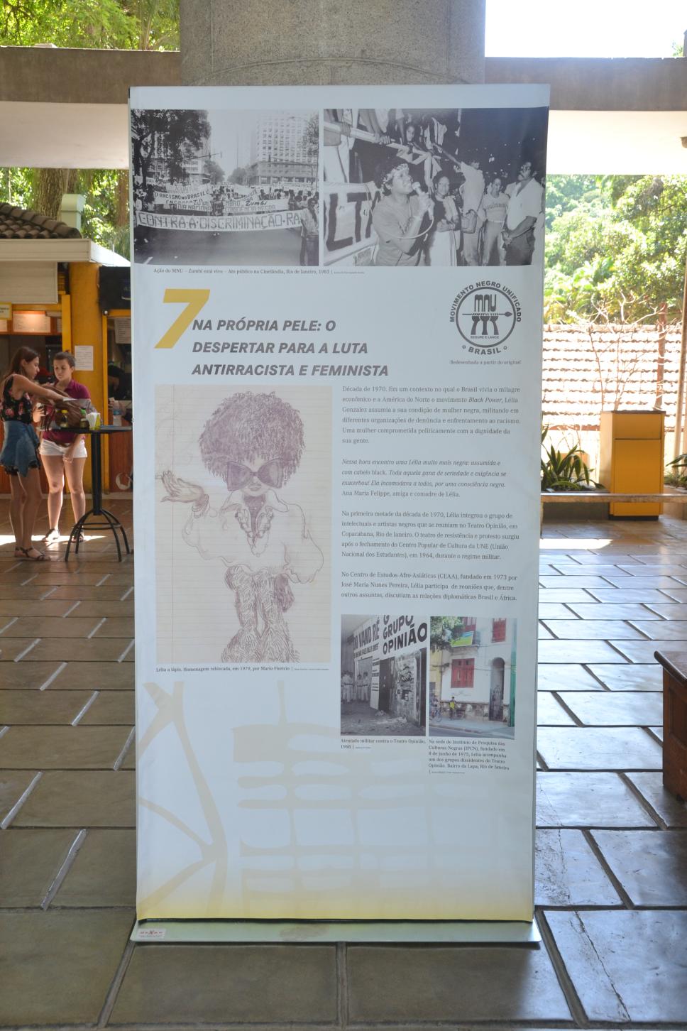 Banner da exposição "Lélia Gonzales - O feminismo negro no palco da história".