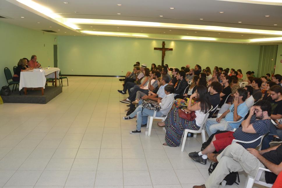 Na mesa da esq. para dir.: profa. Maria Alice Rezende de Carvalho (CIS), profa. Maria Sarah da Silva Telles (SOC), prof. Daniel Aarão Reis (Departamento de Historia/UFF); na 1ª fila da esq. para dir.: n.i., n.i., prof. Marcelo Tadeu Baumann Burgos (SOC), prof. Luiz Jorge Werneck Vianna (CIS), n.i., prof. Felipe Maia Guimarães da Silva (Departamento de Ciências Sociais/UFJF), prof. Fernando Perlatto (Departamento de História/UFJF), profa. Monica Herz (IRI), n.i., n.i.
