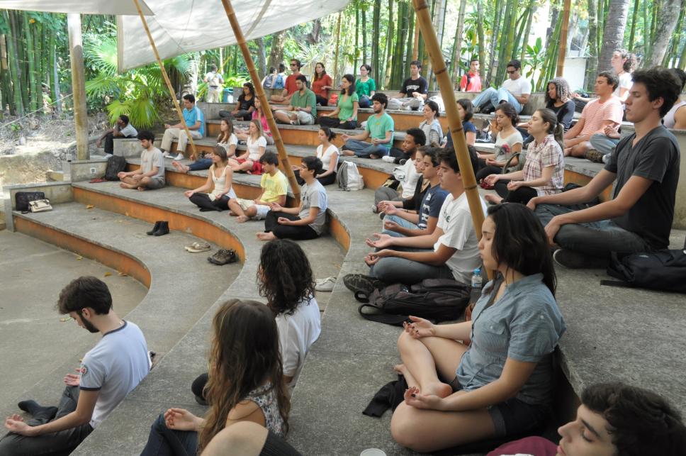 Plateia presente na meditação guiada.