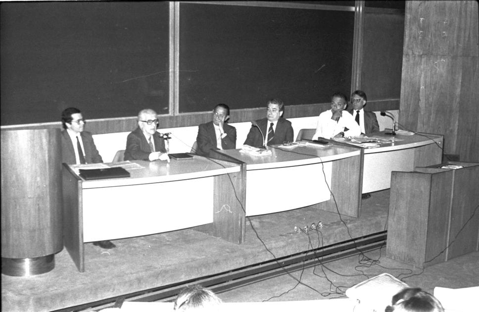 O então senador pelo Rio de Janeiro, Afonso Arinos, ao microfone.