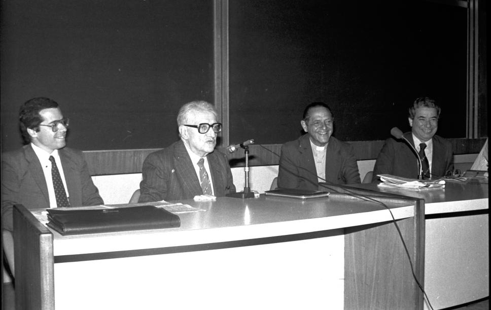 Da esq. para dir.: 2º - senador Afonso Arinos; 3º - pe. Laércio Dias de Moura S.J. (Reitor)