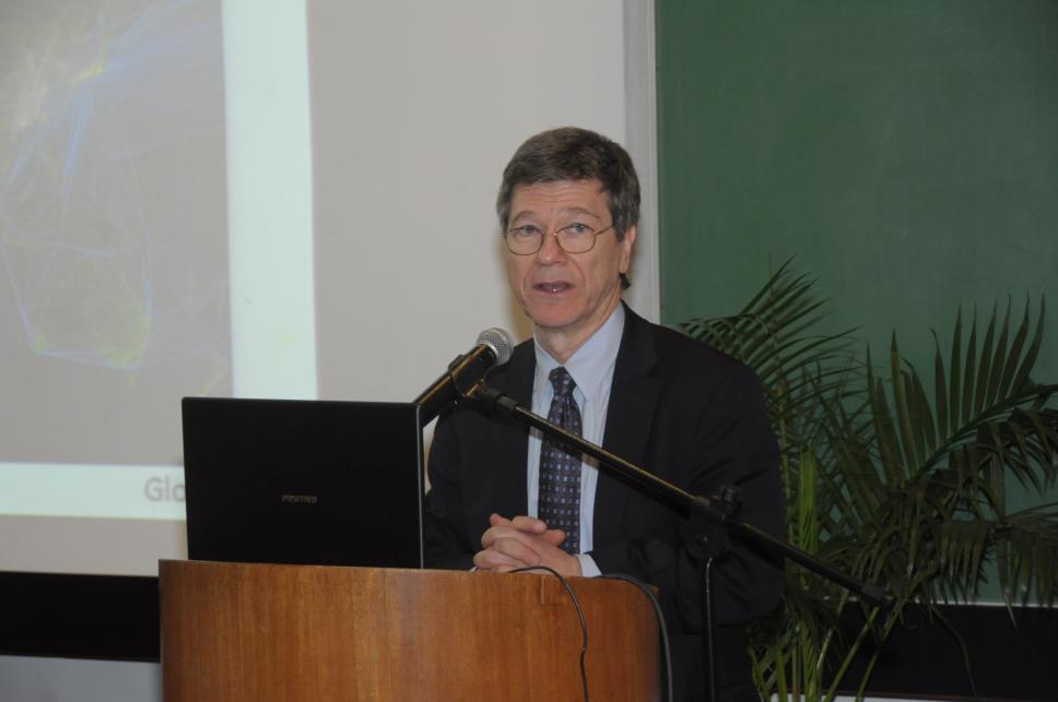 O prof. Jeffrey Sachs ministra a Aula Magna.