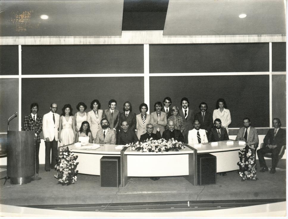 Na mesa da esq. para dir.: 3º - pe. João Augusto Anchieta Amazonas Mac Dowell S.J. (TEO); 4º - pe. Pedro Belisário Velloso Rebello S.J. (Reitor); 5º - prof. pe. Amarilho Checon S.J. (Decano do CTC)