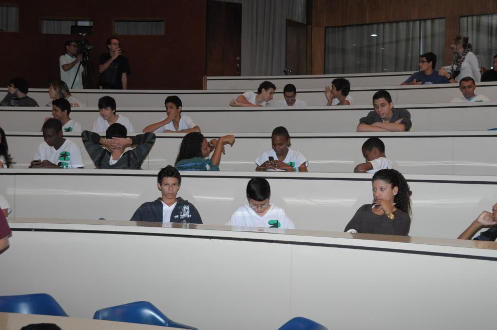 Crianças atendidas pelo NEAM aguardam o início do evento.