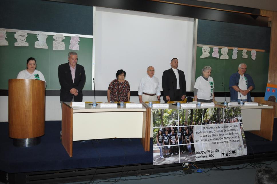 Mesa com palestrantes do evento comemorativo dos 31 anos de fundação do NEAM.