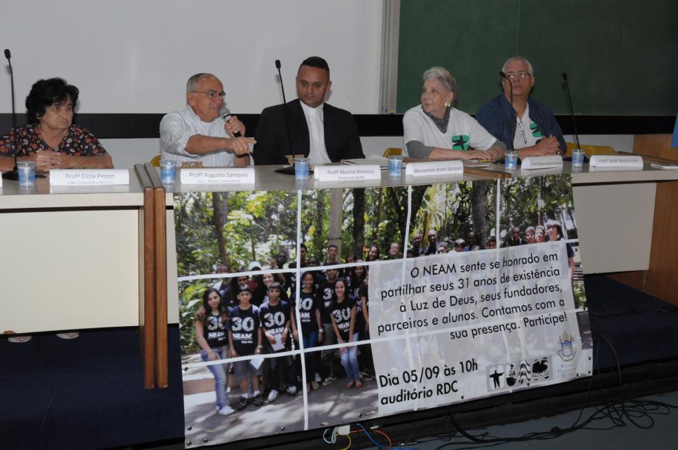 O professor Augusto Sampaio na mesa comemorativa dos 31 anos do NEAM.