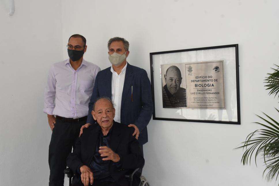 Familiares ao lado do engenheiro Luiz Cyrillo Fernandes na inauguração do novo prédio do Departamento de Biologia.