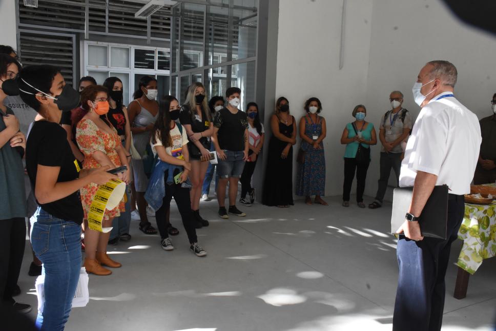 O reitor pe. Josafá S.J. apresenta o curso de Biologia para os novos alunos.