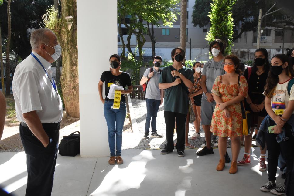 O reitor pe. Josafá S.J. apresenta o curso de Biologia para os novos alunos.