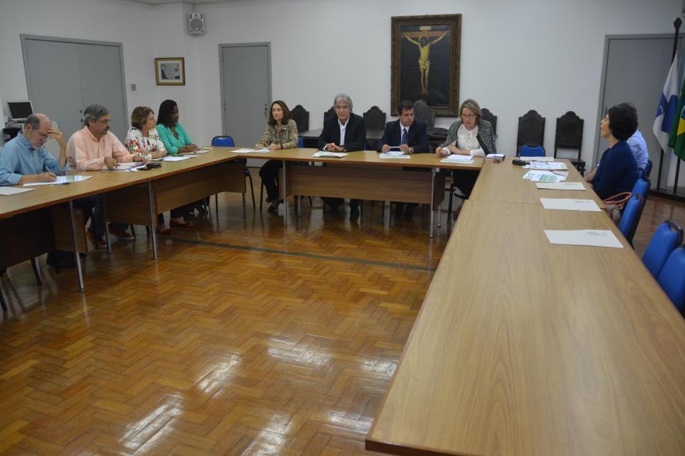 Na mesa da esq. para dir.: 1º - prof. Ilmar Rohloff de Mattos (HIS); 6º - prof. José Ricardo Bergmann (CETUC, Vice-Reitor para Assuntos Acadêmicos); 8ª - profa. Maria Rita Passeri Salomão (EDU, CCG-LIC).