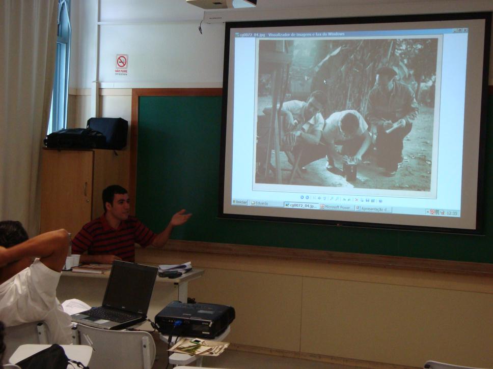 O bolsista de Iniciação Científica, aluno Eduardo Gonçalves, apresenta o acervo do Núcleo de Memória.