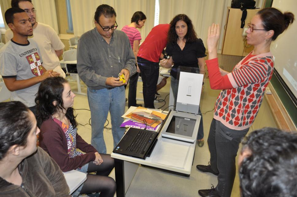 Oficina de digitalização do Núcleo de Memória da PUC-Rio.