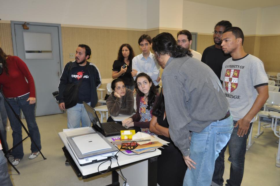 Alunos participam da oficina de digitalização do Núcleo de Memória da PUC-Rio.