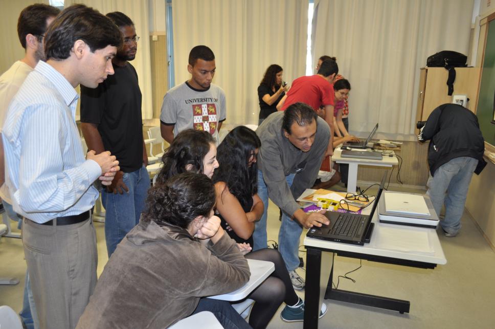 Alunos participam da oficina de digitalização do Núcleo de Memória da PUC-Rio.