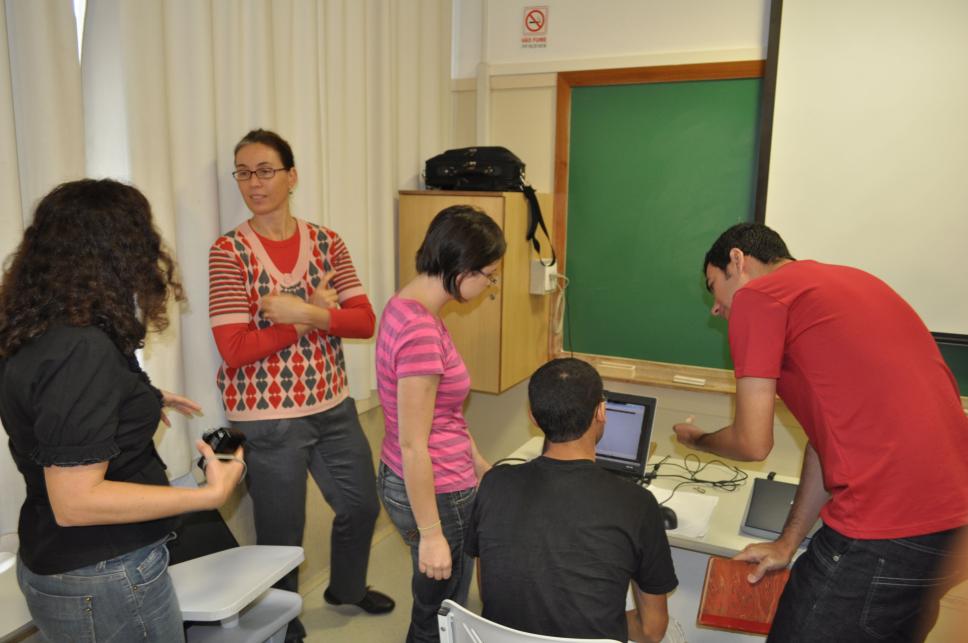 Da esq. para dir.: profa. Eunícia Barros Barcelos Fernandes (HIS), Silvia Ilg Byington (Núcleo de Memória), aluna Elizabeth Melo Cordeiro (Núcleo de Memória, HIS), aluno Ruberval José da Silva (HIS), Eduardo Gonçalves (Núcleo de Memória, HIS)