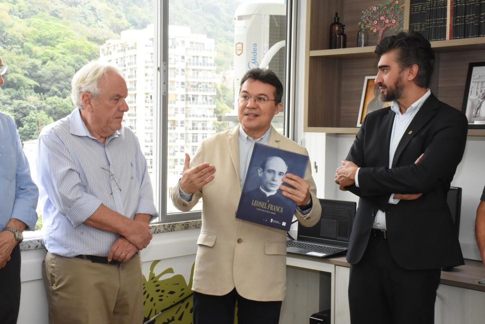 Pe. Roberto S.J. apresenta o livro Leonel Franca: entre anchietas e vieiras, edição comemorativa do 40º aniversário da Fundação Padre Leonel Franca.