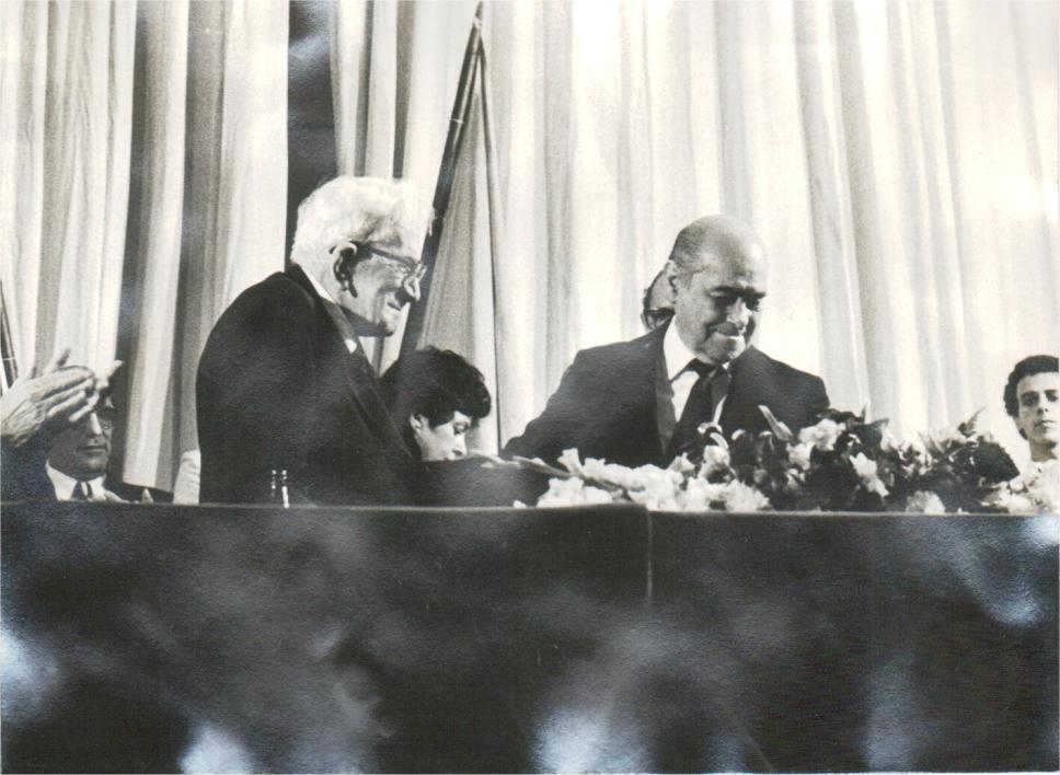 Tancredo Neves se prepara para condecorar Sobral Pinto com a Medalha de Mérito Cardeal Dom Sebastião Leme.
