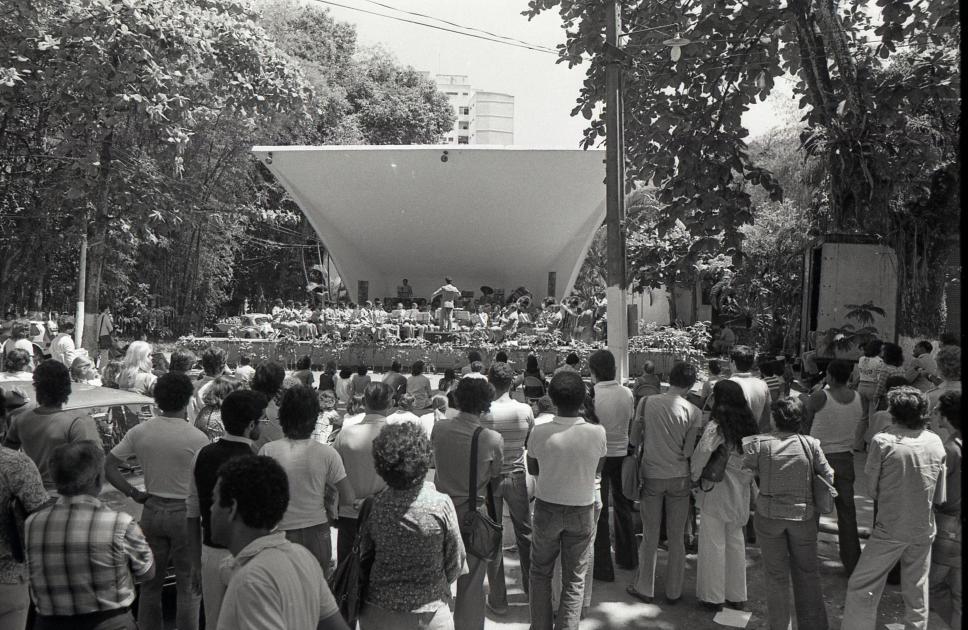 Apresentação da Banda Sinfônica do Corpo de Bombeiros na antiga Concha Acústica no Projeto PUC-Fundação Nacional de Artes (Funarte).