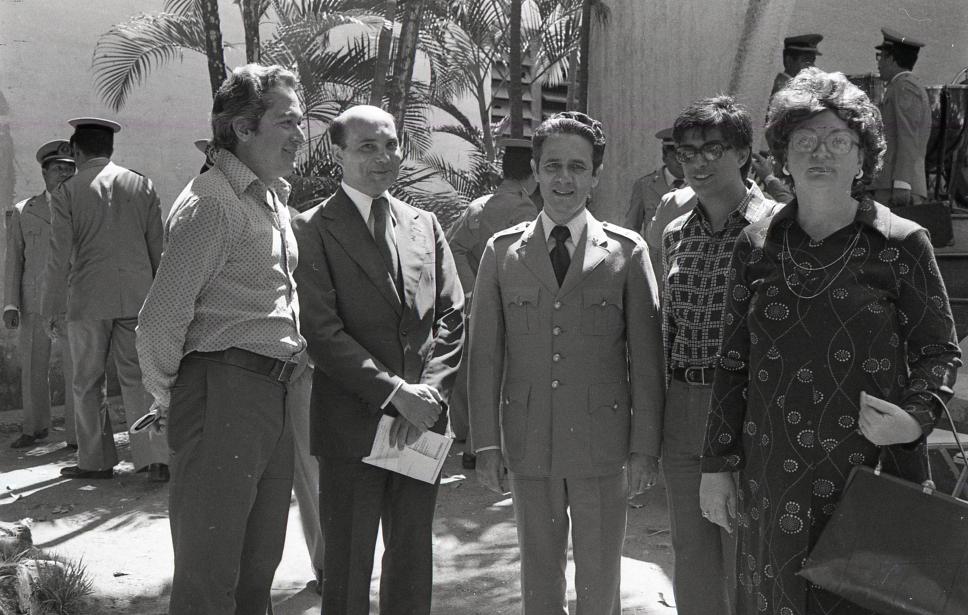 O reitor pe. Mac Dowell S.J. e convidados com o maestro da Banda Sinfônica do Corpo de Bombeiros.