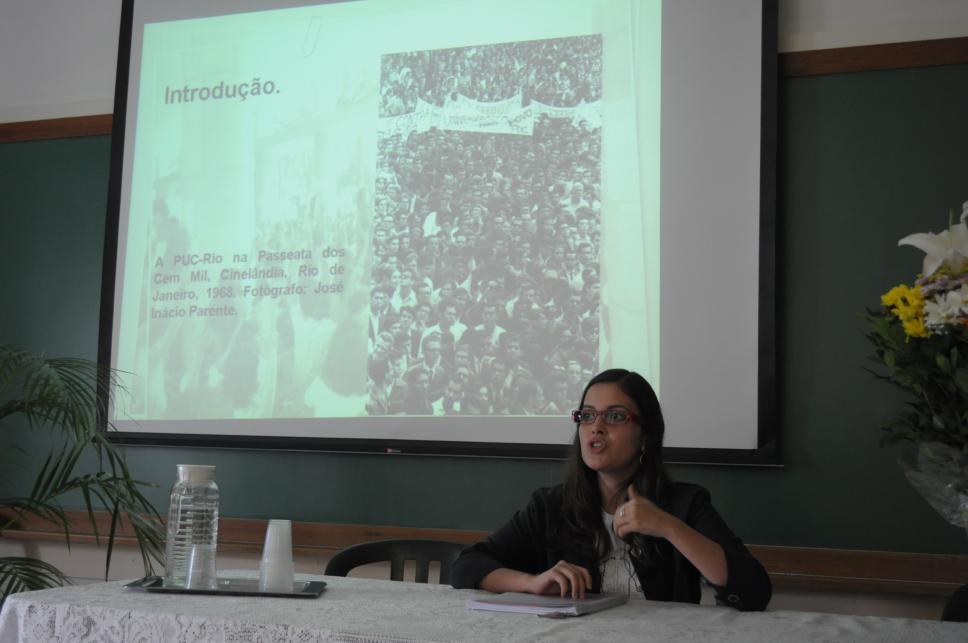 A aluna Juliana Cordeiro de Farias apresenta o seu trabalho de monografia.