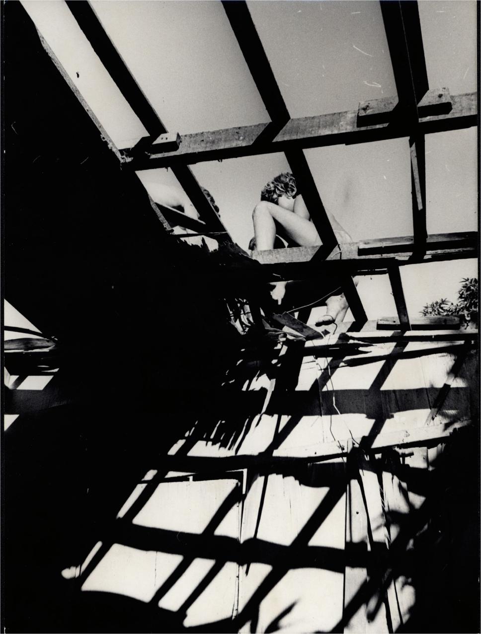 Uma criança desmontando o telhado de uma das casas do Parque Proletário da Gávea.