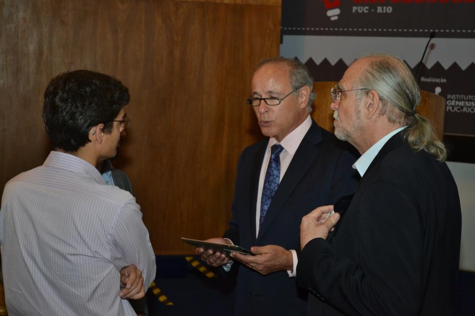 Da dir. para esq.: José Alberto Sampaio Aranha (Gênesis), Otávio Marques de Azevedo ( Presidente da Construtora Andrade Gutierrez), Tiago Mitraud (Coordenador de produtos da Fundação Estudar)