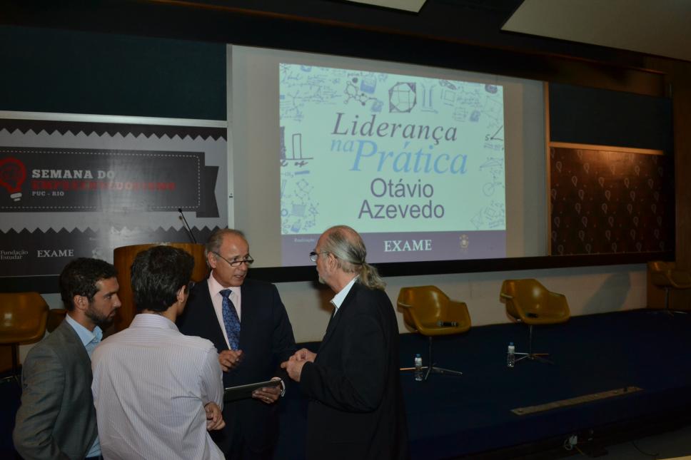 Da dir. para esq.: José Alberto Sampaio Aranha (Gênesis), Otávio Marques de Azevedo ( Presidente da Construtora Andrade Gutierrez), Lucas Amorim (Repórter da revista Exame), Tiago Mitraud (Coordenador de produtos da Fundação Estudar)