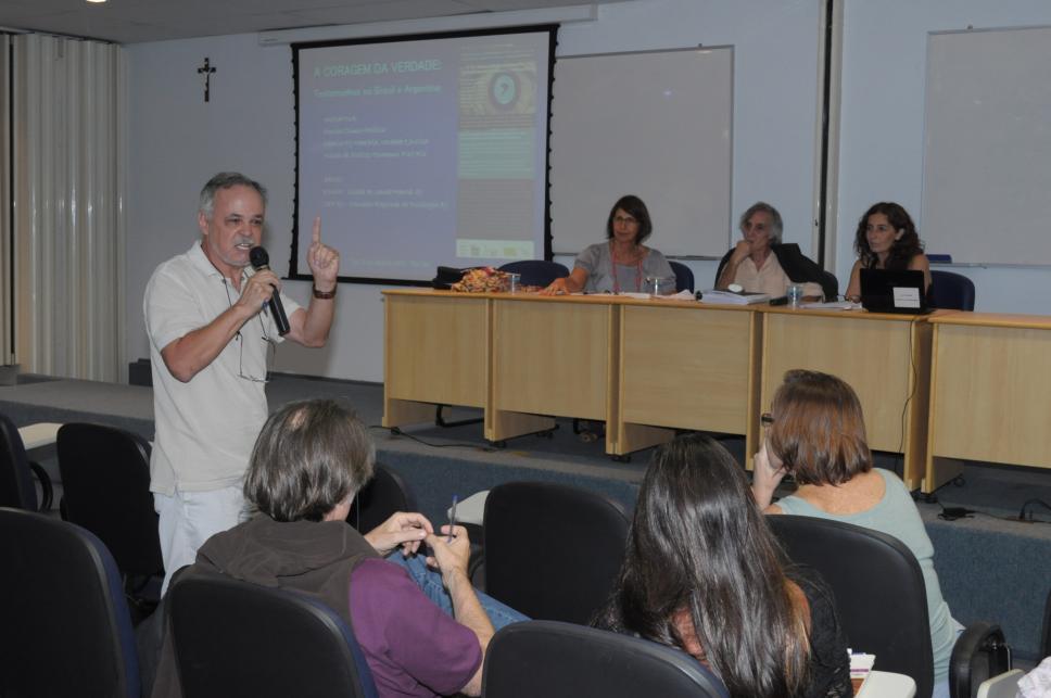 Na mesa da esq. para dir.: 2º: prof. José Maria Gomez (JUR); 3ª: Fabiana Rousseaux (secretária de Direitos Humanos da Argentina)