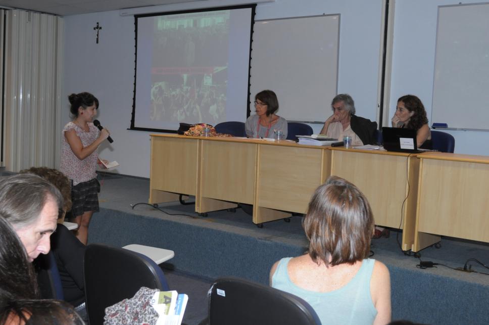 Na mesa da esq. para dir.: 2º prof. José Maria Gomez (JUR); 3ª: Fabiana Rousseaux (secretária de Direitos Humanos da Argentina)