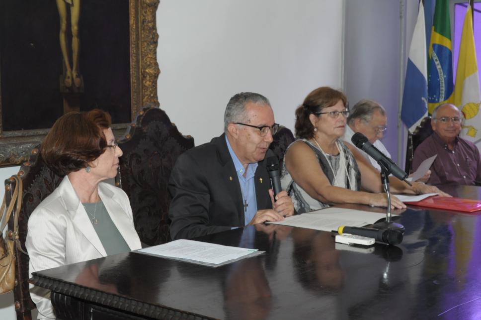 De esq. a dir: profa. Sonia Kramer (EDU), "prof. pe. Josafá Carlos de Siqueira S.J. (GEO, Reitor)", profa. Isabel Alice Oswald Monteiro Lelis (EDU), pe. Francisco Ivern Simó S.J. (Vice-Reitor), prof. Augusto Sampaio (Augusto Luiz Duarte Lopes Sampaio) (COM, Vice-Reitor para Assuntos Comunitários)