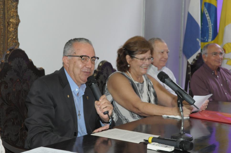 De esq. a dir: prof. pe. Josafá Carlos de Siqueira S.J. (GEO, Reitor), profa. Isabel Alice Oswald Monteiro Lelis (EDU), pe. Francisco Ivern Simó S.J. (Vice-Reitor), prof. Augusto Sampaio (Augusto Luiz Duarte Lopes Sampaio) (COM, Vice-Reitor para Assuntos Comunitários)