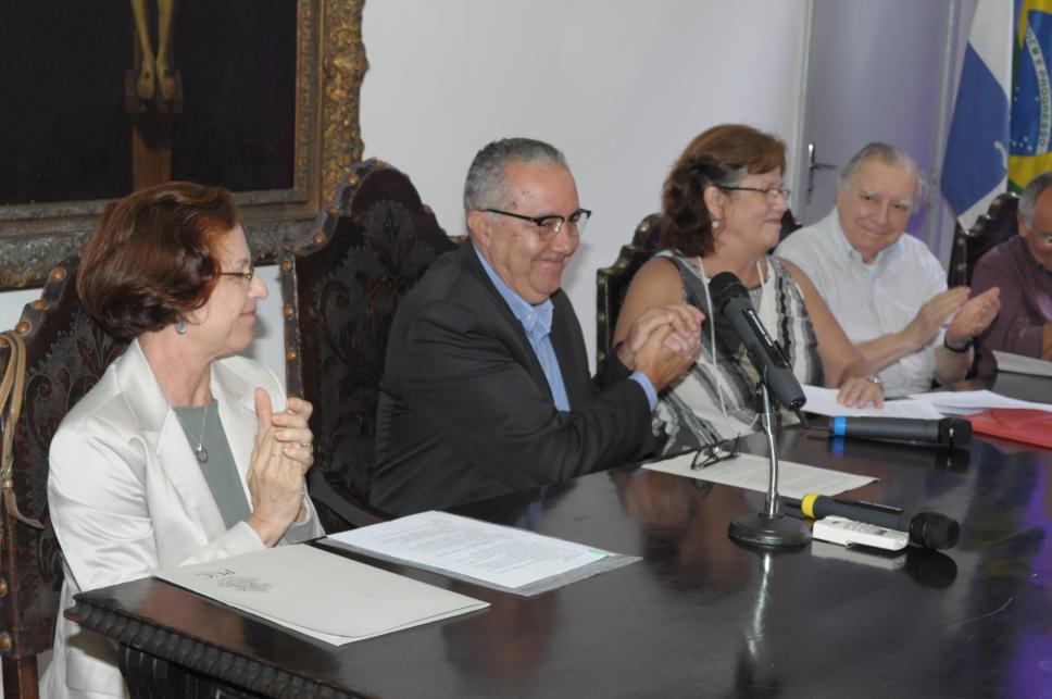 De esq. a dir: profa. Sonia Kramer (EDU), prof. pe. Josafá Carlos de Siqueira S.J. (GEO, Reitor), profa. Isabel Alice Oswald Monteiro Lelis (EDU), pe. Francisco Ivern Simó S.J. (Vice-Reitor)