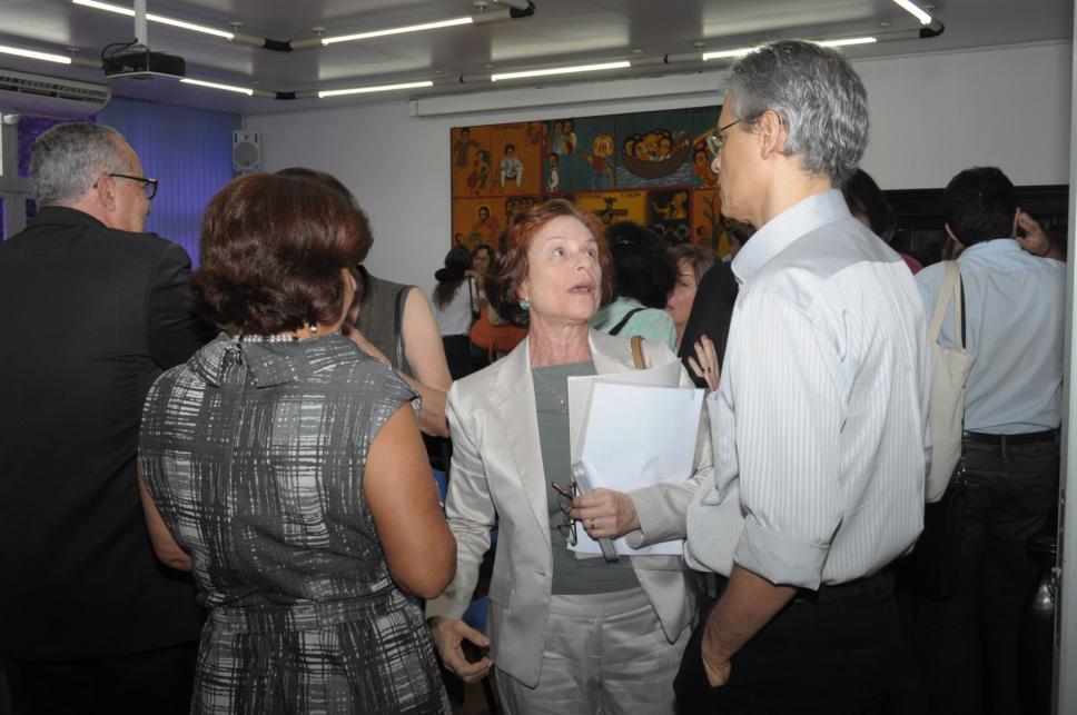 Da esq. para dir.: prof. Paulo César Duque Estrada (FIL), profa. Sonia Kramer (EDU), Ivone de Figueiredo dos Santos (REI), "prof. pe. Josafá Carlos de Siqueira S.J. (GEO, Reitor)"