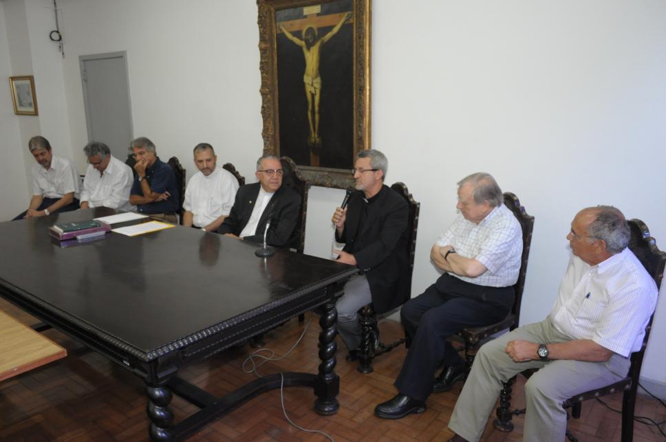 De esq. para dir.: prof. Ricardo Tanscheit (ELE), prof. Sérgio de Almeida Bruni (Vice-Reitor para Assuntos de Desenvolvimento), prof. José Ricardo Bergmann (CETUC, Vice-Reitor para Assuntos Acadêmicos), prof. pe. Leonardo Agostini Fernandes (TEO), prof. pe. Josafá Carlos de Siqueira S.J. (GEO, Reitor), prof. pe. Geraldo Dôndici Vieira (TEO), prof. pe. Francisco Ivern Simó S.J. (Vice-Reitor), prof. Augusto Sampaio (COM, Vice-Reitor para Assuntos Comunitários)