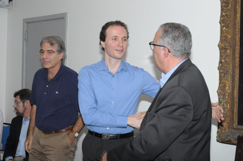De esq. para dir.: prof. Luiz Alencar Reis da Silva Mello (CETUC), prof. José Ricardo Bergmann (CETUC, Vice-Reitor para Assuntos Acadêmicos), prof. Luiz Felipe Roris Rodriguez Scavarda do Carmo (IND), prof. pe. Josafá Carlos de Siqueira S.J. (GEO, Reitor)