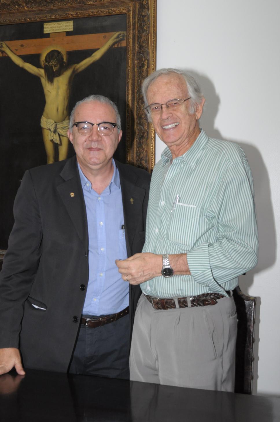 De esq. para dir.: prof. pe. Josafá Carlos de Siqueira S.J. (GEO, Reitor), prof. Nélio Domingues Pizzolato (IND)