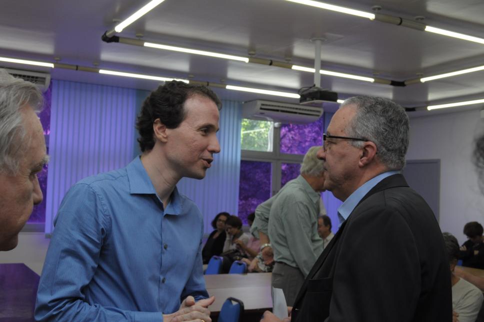 De esq. para dir.: prof. Luiz Felipe Roris Rodriguez Scavarda do Carmo (IND), prof. pe. Josafá Carlos de Siqueira S.J. (GEO, Reitor)