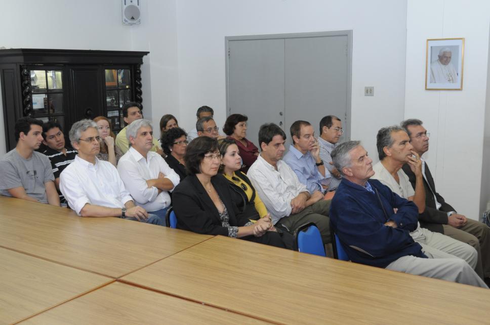 Da dir. para esq.: Primeira fila - 1o. prof. Sérgio Leal Braga (MEC); Segunda fila: 1a. Eliane Albernaz (VRAD), 2a. Bianca Renovato de Albuquerque (VRAC); Terceira fila: 1o. prof. Paulo César Duque Estrada (FIL), 2o. prof. Alfredo Jefferson de Oliveira (DAD), 3a. Célia Maria de Souza Pereira (VRAC), 5a. Ivone de Figueiredo Santos (REI)