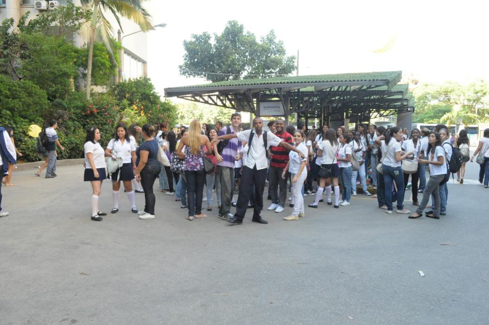 Participantes do PUC Por Um Dia. Escolares de uniforme.