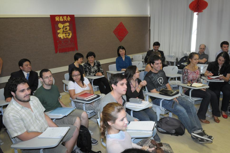 Vice-ministra assiste apresentação dos alunos em mandarim.