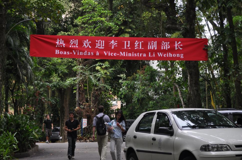 Banner de boas-vindas à Vice-Ministra Li Weihong.
