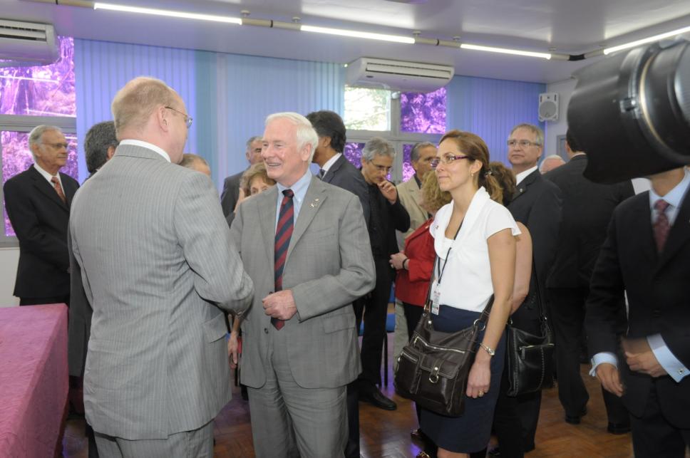 Da esq. para dir: Nélio Domingues Pizzolato (IND), prof. Kai Michael Kenkel (IRI), David Johnston (governador-geral do Canadá) e, ao fundo, prof. Paulo César Duque Estrada (FIL)