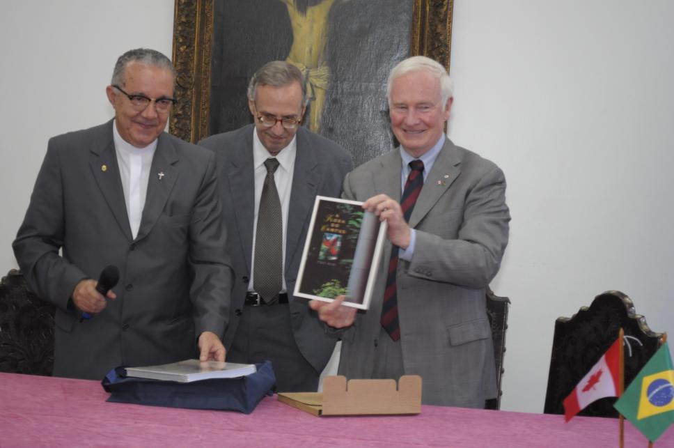 Pe. Josafá presenteia o Governador-Geral do Canadá com o seu livro "A flora do campus".