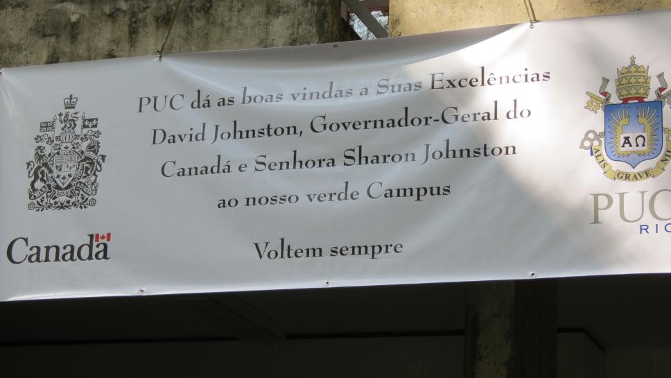 Banner de boas vindas ao Governador-Geral do Canadá e a senhora Sharon Johnston.