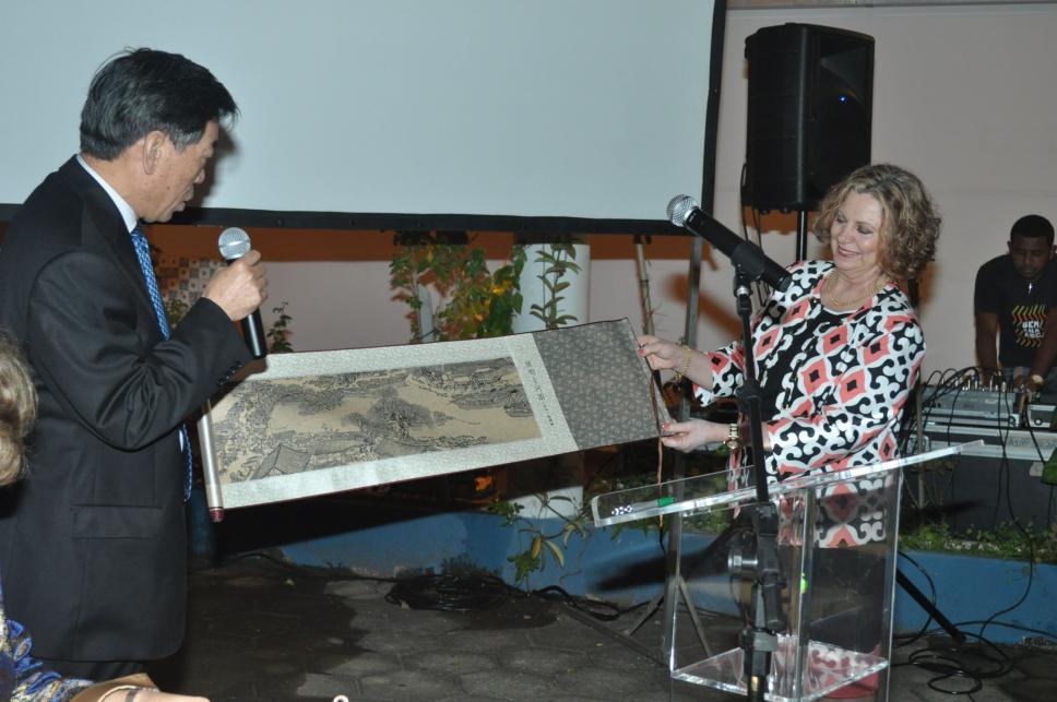 Da esq. para dir.: Yan Chunlai (vice-diretor da Secretaria de Educação de Hebei), profa. Rosa Marina de Brito Meyer (LET)