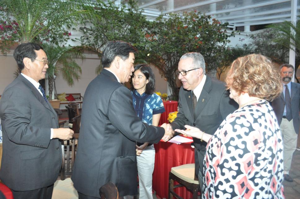 Padre Josafá cumprimenta Yan Chunlai, vice-diretor da Secretaria de Educação de Hebei.