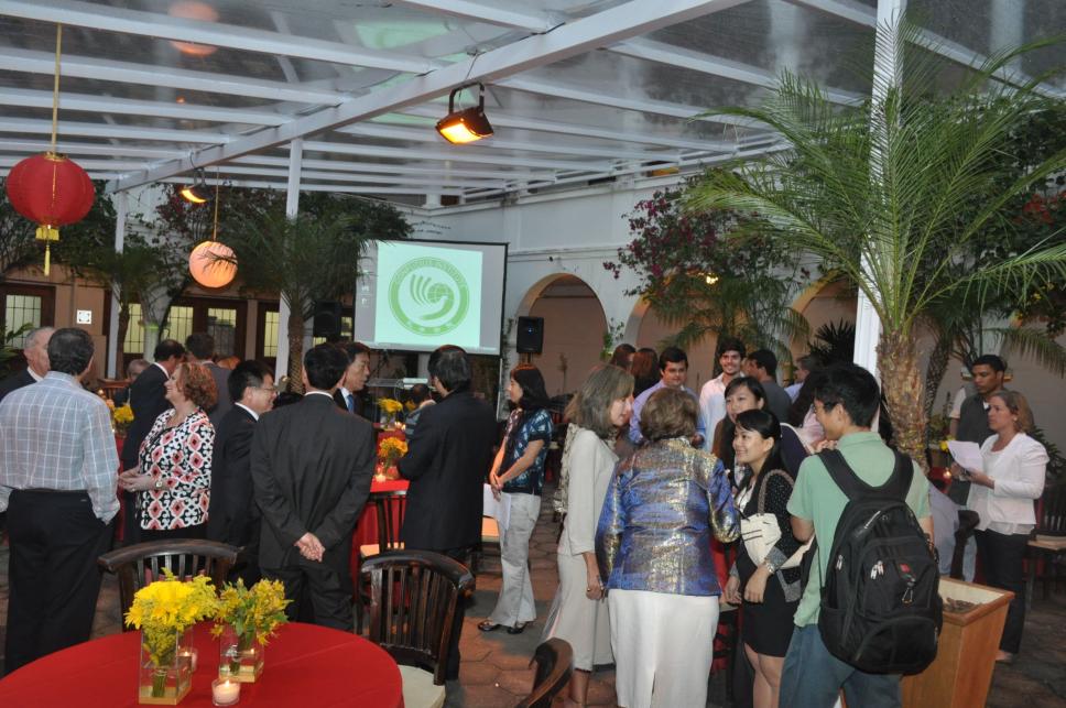 Da esq. para dir.: prof. pe. Josafá Carlos de Siqueira S.J. (GEO, Reitor) e profa. Rosa Marina de Brito Meyer (LET); De costas de blusa azul: profa. Silvia Beatriz Alexandra Becher Costa (LET)